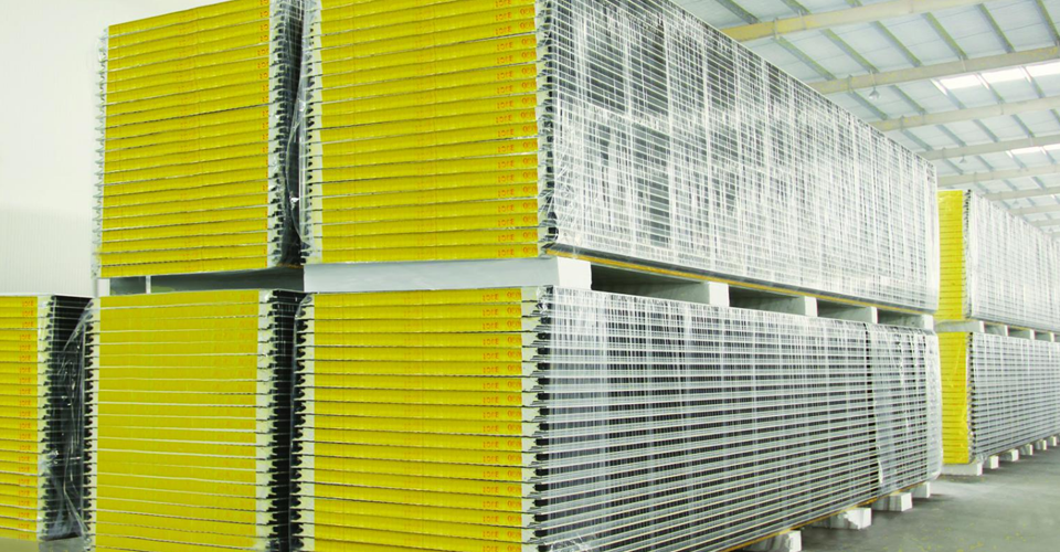 聚氨酯巖棉板安裝方便,快捷,隔熱,防火,環(huán)保,外形美觀,單位重量輕,被廣泛用于工廠,倉庫,辦公樓等項目。  該板由內(nèi),外鋼板和芯材組成。外鋼板通常為0.6厚,內(nèi)鋼板通常為0.4或0.5厚。外鋼板的表面形式一般分為三種:純平,小波紋和壓紋效果(純平和小波紋 好,許多業(yè)主喜歡使用純平板);芯材通常使用巖棉,玻璃棉或聚氨酯材料,是通過機(jī)械配合制成的。  聚氨酯巖棉板的安裝過程:  物料到達(dá)和卸載→確定起始板的高度和軸線→安裝溢流板和貨盤→安裝夾心板→安裝垂直金屬